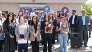 Tevgera Jinên Azad (TJA) derbarê geşedana dawî ya di dosyeya Gulistan Doku de li ber Dadgeha Êlihê daxuyanî da çapemeniyê. Di daxuyaniyê de rêveber û endamên DEM Partî û DBPê yên Êlihê û aktivîstên TJAyê, rêveveberên saziyên sivîl amade bûn. Aktivîsta TJAyê Gulbahar Kaya daxuyanî xwend.