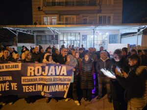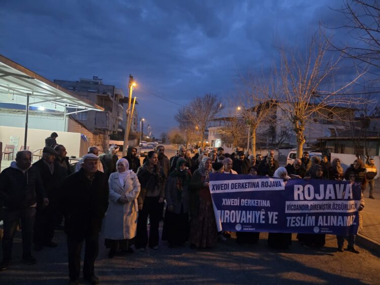 Hevserokê DEM Partiyê yê Salihliyê Abdurahman Akdemîr daxuyaniya çapemeniyê xwend. Akdemîr diyar kir ku sîstema gerdûnî hewl dide krîzên xwe bi înkarkirina îradeya gelan û bi rêya wêrankirin û zorê bi rê ve bibe. Akdemir bal kişand ser qirkirinên li Rojava û rola hêzên navneteweyî û ev bang kir: “Piştgiriya bi gelê Rojava re ne tercihek e, berpirsyariyeke li hemberî mirovahiyê ye. Ev ne mijara ewlehiyê ye, polîtîkaya tasfiyekirinê ye. Ev ne pevçûn e, dorpêç e. Ev ne rewşeke demkî ye, meyleke bi zanebûn e. Berxwedana îradeya gelan nayê şikandin. Şer, înkar û tarîtiya cîhadîst wê têk biçin; têkoşîna azadî, wekhevî û aştiyê wê bi ser bikeve.”