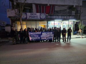 Evîn Gunselê ji Navçeya Şehzadelerê ya Manîsayê bang li gel kir ku bi hev re piştgiriyê bidin û got: “Em ê berxwedana li ser perspektîfa civaka demokratîk, parastina destkeftiyên gelan û têkoşîna ji bo rawestandina qirkirinan bidomînin. Em ê li hember tiştên qewimîn bêdeng nemînin.”