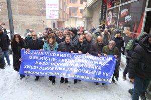 Platforma Saziyên Demokratîk a Erziromê li dijî êrişên li ser Rojava li Erziromê meşek li dar xist. Beriya meşê, polîsan Navenda DEM Partiyê ya Erziromê ya li Mahallebaşiyê bi barîkatan dorpêç kir. Tevî astengiyan jî, girse meşiya. Di meşê de girseyê dirûşmeyên “Bijî berxwedana Rojava” û “Jin, jiyan, azadî” berz kirin û heta Meydana Bajêr meşiyan. Di meşê de, pankartên bi Tirkî û Kurdî yên bi nivîsa “Rojava wijdan e, azadî ye, berxwedan nayê teslîm girtin” hat vekirin. Piştî meşê daxuyaniyek hat dayîn.