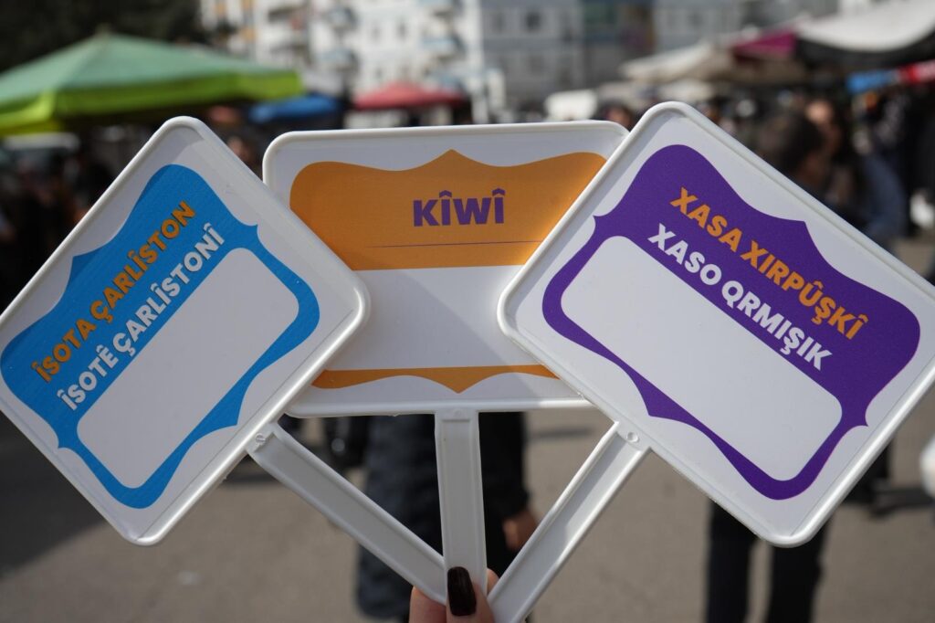 Armanca sereke ya çalakiyê zêdekirina hişmendiya zimanî bû. Ji ber vê yekê, etîketên cûr bi cûr li firoşkar û welatiyan hatin belavkirin. Di nav wan de etîketên biha û navên sebzeyan bi Kurdî (Kurmancî û Kirmanckî), her wiha tabelayên deriyan ên bi nivîsên “Vekirî – Girtî” û “Bi xêr hatin” jî hebûn û li dikan û kargehan hatin daliqandin.
