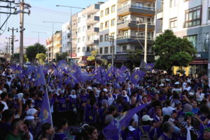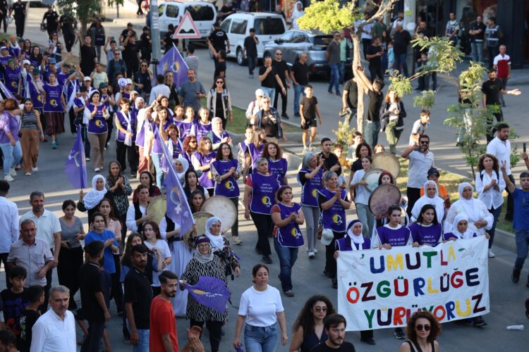 Tevgera Jinên Azad (TJA) bi dirûşma “Em bi hêviyê ber bi azadiyê ve dimeşin” di 1ê Cotmehê de ji Amedê ber bi Enqereyê ve meşek dabû destpêkirin. Meş di roja pençemîn de biçoş berdewam dike. Di roja pêncemîn de jin li Edenê derketibûn û gihiştin Mêrsînê. Dema ku jin bi meşê ketin Mêrsînê ji aliyê dayîkên aştiyê, şeniyên Mêrsînê, rêxistina DEM Partiyê ya navend û navçeyên Mersînê ve bi girseyî hatin pêşwazîkirin. Di pêşwazîkirinê de dirûşmên “Mafê hêviyê mafê gelan e”, “Bijî Serok Apo” û “Jin Jiyan Azadî” hatin berzkirin û kulîlk dan meşvanan. Piştî pêşwazîkirinê girse ji Parka Aştiyê heta avahiya DEM Partiyê ya Akdenîzê ve meşiyan. Piştî meşê girse govend gerand û peyama Rêberê Gelê Kurd Abdullah Ocalan hat xwendin û girse dirûşma “Bijî Serok Apo” berz kir. Paşê peyama girtiyên siyasî yên jin hat xwendin. Peyam ji aliyê Rojîn Altay a TJAyî ve hat xwendin.