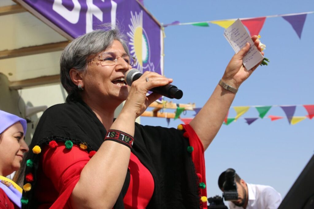 * Aktivîsta TJAyê Ayla Akat Ata di mitîngê Amedê de axivî, bal kişand ser peyama Rêberê Gelê Kurd Abdullah Ocalan û wiha got: “Banga aştî û civaka demokratîk gihîşte me, em weke TJAyê, dayik û jin li pey banga birêz Abdullah Ocalan in.”