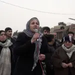 Gelê Efrînê ku di 2018’an de li Efrînê rastî komkujî û qirkirina dewleta Tirk û çeteyên wê hat û koçber bû, di sala 2024’an de ji Şehbayê koçî bajarê Qamişloyê ya kantona Cizîrê ya Bakur û Rojhilatê Sûriyê kir, ji bo piştgiriya Şêxmeqsûd û Eşrefiyê daketin kolanan. Gel li pêşiya Baxê Giştî û Navenda Çand û Hunerê ya Mihemed Şêxo kom bû. Girse ji wir heta Çerxerêya Şehîdan a li Sûkê meşiya û li ber Navenda Çand û Hunerê ya Mihemed Şêxo kom bû. Girse bi yek dengî diruşma “Bijî berxwedana Şêxmeqsûd û Eşrefiyê”, “Bijî berxwedana Hêzên Parastina Efrînê, Hêzên Parastina Şêxmeqsûd û Eşrefiyê”, “Şêxmeqsûd û Eşrefiyê azad in, Colanî û DAIŞ yek in”. li dijî êrişan çalakî didomin. Gel banga beşdarbûna çalakiyê dike.