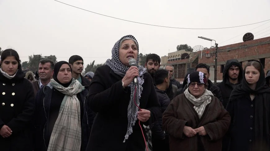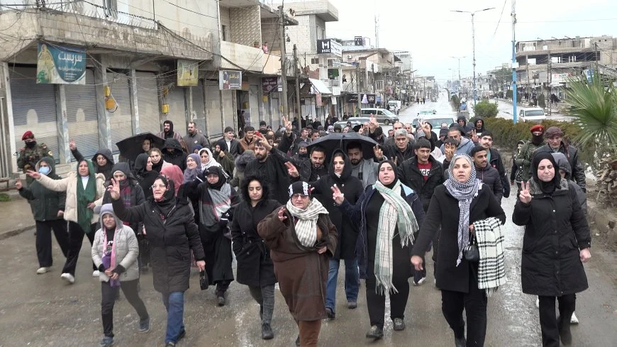 Gelê Efrînê ku di 2018’an de li Efrînê rastî komkujî û qirkirina dewleta Tirk û çeteyên wê hat û koçber bû, di sala 2024’an de ji Şehbayê koçî bajarê Qamişloyê ya kantona Cizîrê ya Bakur û Rojhilatê Sûriyê kir, ji bo piştgiriya Şêxmeqsûd û Eşrefiyê daketin kolanan. Gel li pêşiya Baxê Giştî û Navenda Çand û Hunerê ya Mihemed Şêxo kom bû. Girse ji wir heta Çerxerêya Şehîdan a li Sûkê meşiya û li ber Navenda Çand û Hunerê ya Mihemed Şêxo kom bû. Girse bi yek dengî diruşma “Bijî berxwedana Şêxmeqsûd û Eşrefiyê”, “Bijî berxwedana Hêzên Parastina Efrînê, Hêzên Parastina Şêxmeqsûd û Eşrefiyê”, “Şêxmeqsûd û Eşrefiyê azad in, Colanî û DAIŞ yek in”. li dijî êrişan çalakî didomin. Gel banga beşdarbûna çalakiyê dike.