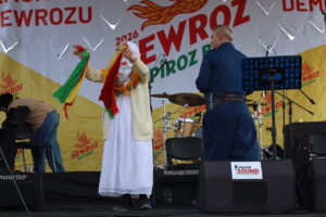 Ciwanan li qada Newrozê û li ser dikê posterên mezin ên Rêberê Gelê Kurd Abdullah Ocalan û Salih Muslim hildan. Her wiha wêneyên Rahşan Demîrel, Sema Yuce û Kemal Kurkut jî hatine hildan. Stranbêj Devrîm Çelîk û Aylîn Demîrkaya derketin ser dikê û strîn û gel li ber stranan wan govend gerand.