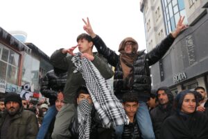 Platforma Saziyên Demokratîk li dijî êrişên li ser Rojava li Geverê meşeke girseyî li dar xist û piştgiriya xwe ji bo Rojava anî ziman.