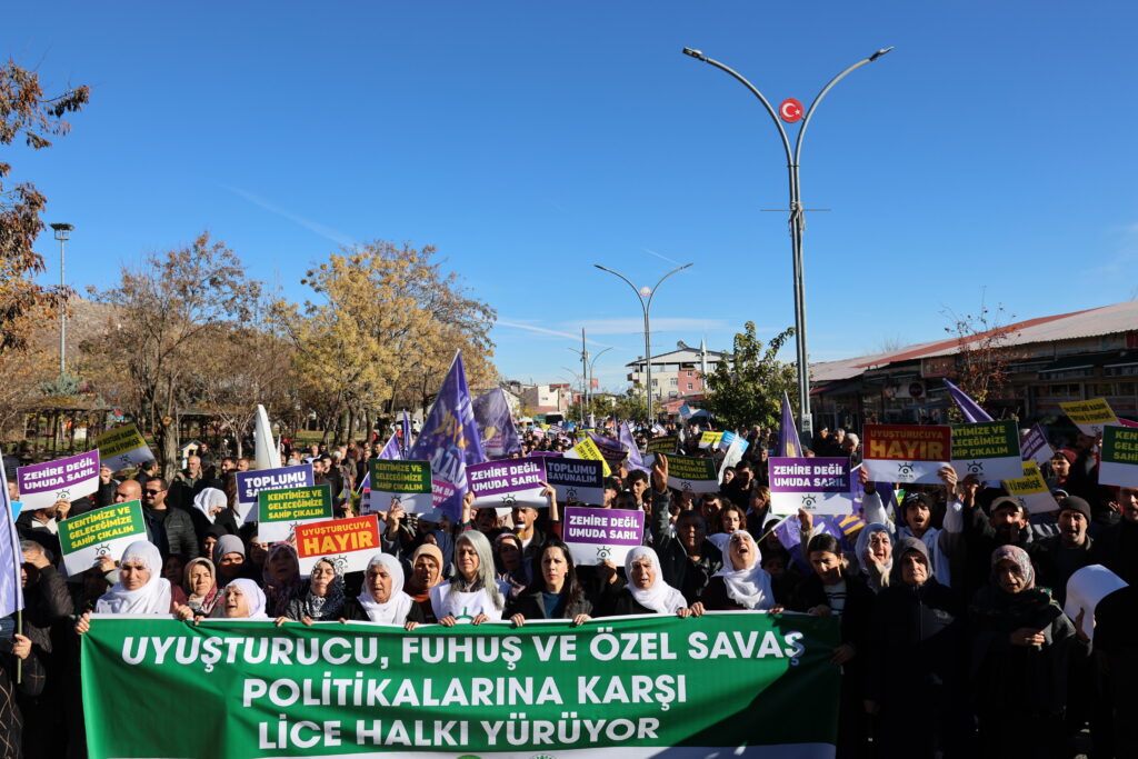 Li Licê bi pêşengtiya Platforma Şiyar Be de li dijî hişbir û fihûşê meş hat li darxistin. Girse li pêşiya Fabrîqeya Halîs Toprak kom bû, li heta navenda bajêr meşiya. Hevseroka Partiya Heremên Demokratîk (DBP) a Giştî Çîgdem Kiliçgun Ûçar, Endam û Rêveberên Partiya Wekhêvî û Demokrasiyê ya Gelan (DEM Partî), Tevgera Jinên Azad (TJA), gelek partiyên siyasî û saziyên sivîl û gelek welatî tevî meşê bûn.