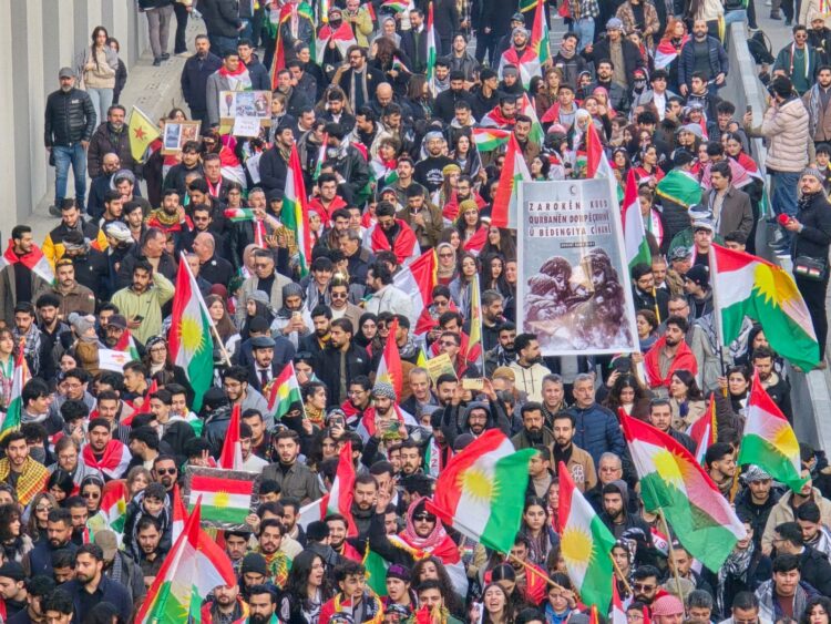 * Herî zêde sloganên, “Yek e yek e yek e, Kurdistan yek e” û Rojava Rojhilat e Kurdistan yek welat e” hatin avêtin.