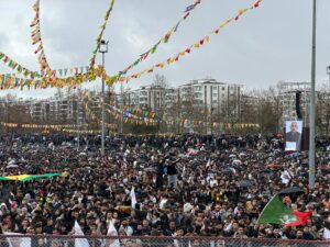Pîrozbahiya Newroza Amedê bi coşeke mezin didome. Di pîrozbahiyê de Denîz Kaya li ser navê Girtiyên Siyasî yên Tirkiye û bakurê Kurdistanê peyamek ji bo Newrozê şand. Denîz Kaya di peyamê Newroz pîroz kir û got: “Roja vejîna destana azadiyê ye.”