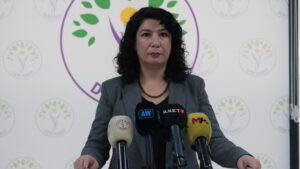 Berdevka Meclisa Jinan a DEM Partiyê Halîde Turkoglû li avahiya DEM Partiyê ya Amedê têkildarî rojevê civîna çapemeniyê li dar xist. Endam û rêveberên DEM Partiyê tev li civînê bûn. Halîde Turkoglûyê geşedanên li welat, herêmê û cîhanê nirxand.