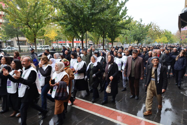 Piştre meş hat destpêkirin. Di meşê de bi dirûşma “Nan, aştî, azadî” hat berzkirin. Meş li pêşberî avahiya DEM Partiyê ya Êlihê bidawî bû. Piştî meşê koma ku dê beşdarî meşa Enqereyê bibe bi berzkirina dirûşmeyan hate oxirkirin.