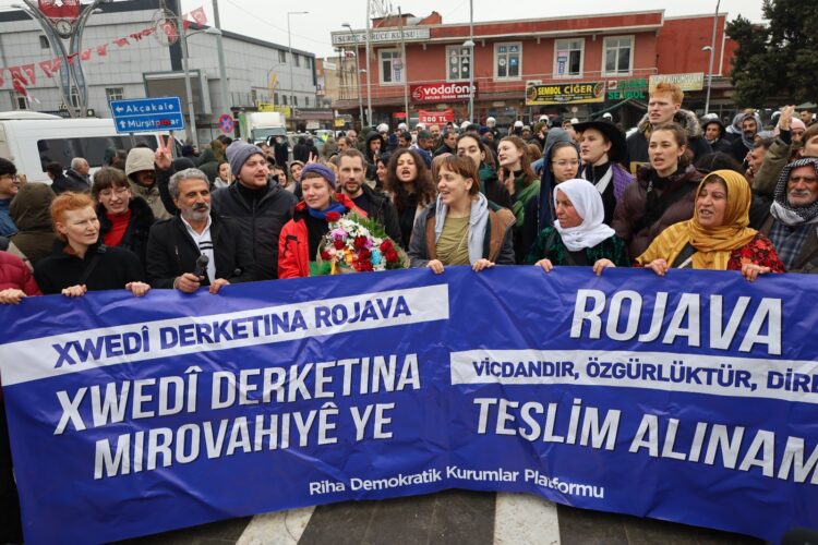 HDKê di daxuyaniyê de diyar kir ku 29 enternasyonalîst li gel HDK û DEM Partiyê êvara 29ê Çileyê ber bi Pirsûsê ketine bi rê ketine û wiha got: “Karavana Gelan a ku bi dirûşm û stranan ve ketin rê, li gel hewldanên sîstematîk ên ji bo astengiya rêwitiya wan, di 30ê Çileyê da nîvro gihîştin Pirsûsê û berxwedana Kobanê silav kir. Ev mîrate piştevaniya enternasyonalîs xurt dike. Hevrêyên me tevî xetereya dersînorkirin û girtinê xwedî li Rojava derkevin û gotin ‘an em ê Rojava biparêzin an jî em ê dersînor bibin” û li dijî sînoran piştevaniya enternasyonalîst bilind kirin.”