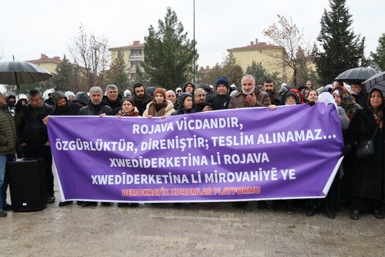 Platforma Saziyên Demokratîk li dijî êrişên li ser Rojava li navçeya Artûklû ya Mêrdînê daxuyanî da. Hevserokê DEM Partiyê yê Artûklûyê Mehmet Bîngol di daxuyaniyê de destnîşan kir ku heta Rojava azad nebe, çete bi paş ve neçin wê gelê Bakur li ser pêyan be.