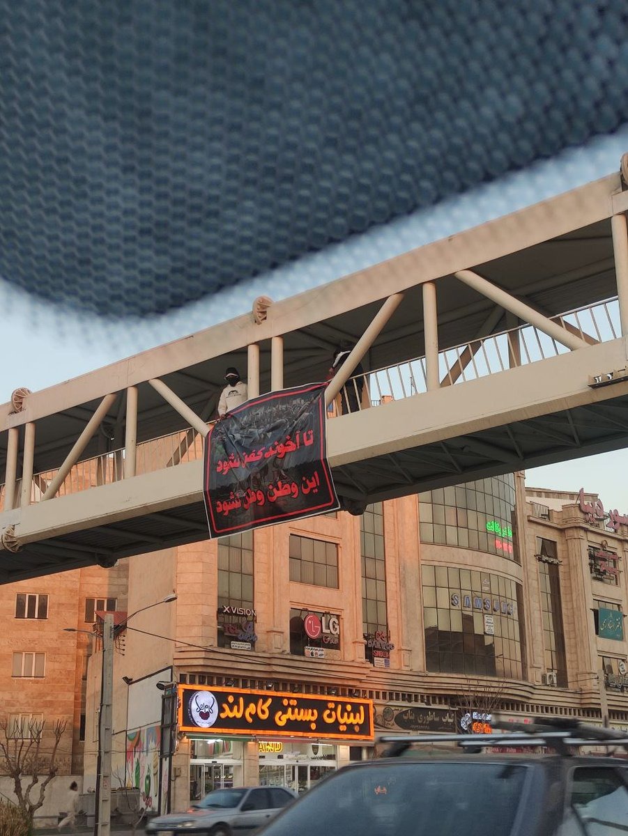 Li bajarê Fardîsê yê Îranê pankarta “heta molla neyê kefenkirin ev welat nabe welat” hat daliqandin.