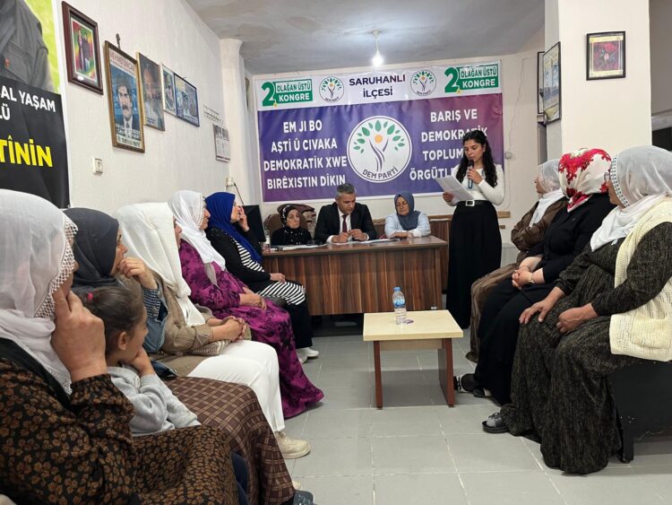 Kongereya Rêxistina DEM Partî ya Saruhanli ya Manîsayê li avahiya navçeyê bi awayeke girseyî hate lidarxistin. Hevserokên DEM Psrtî yên Manîsayê Kerem Taylan û Evîn Gunsel û gelek nûnerên partî û saziyên sivîl tevlî kongreyê bûn.
