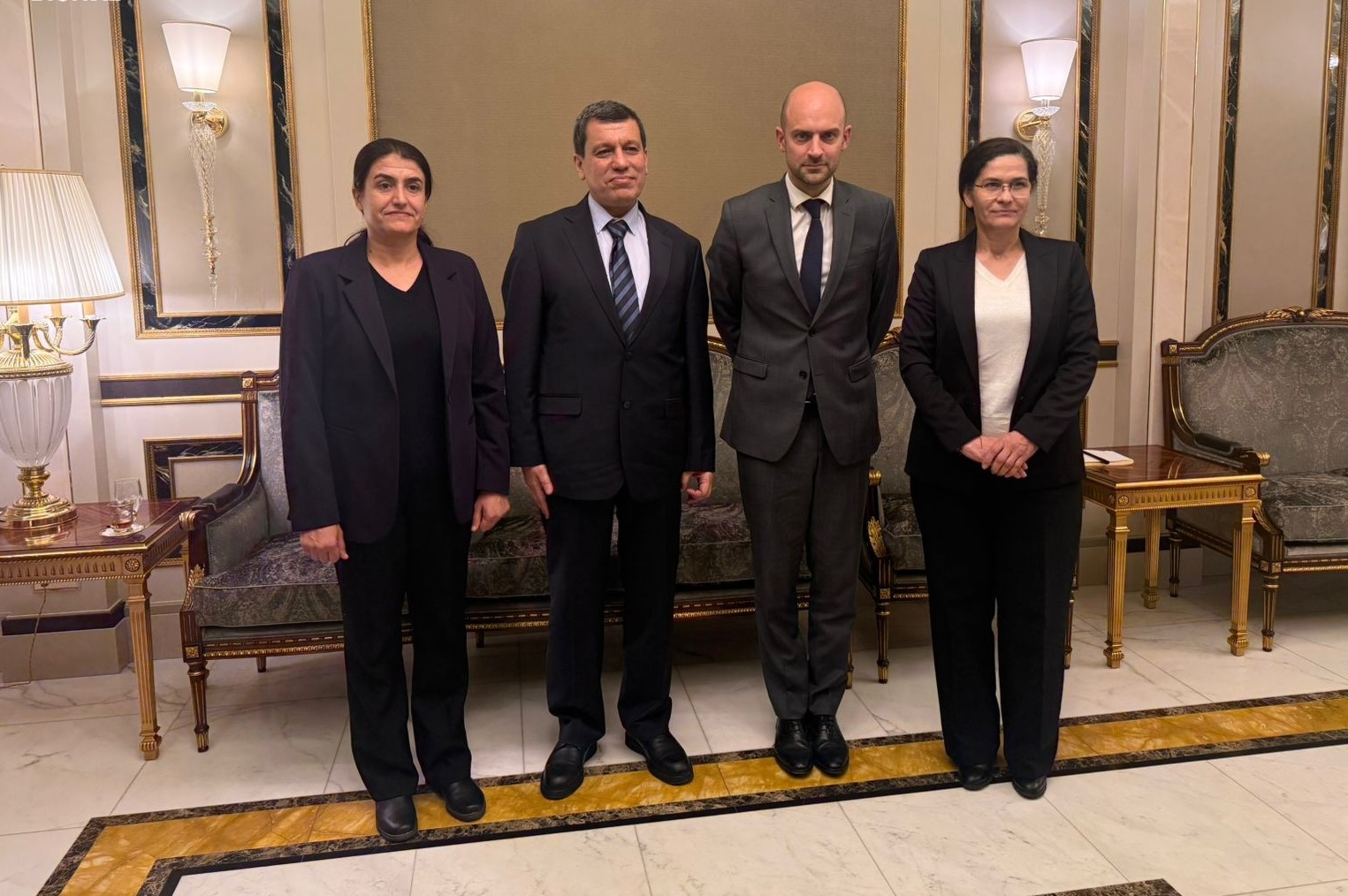 Wezîrê Karên Derve yê Fransayê bi Fermandarê Giştî yê Hêzên Sûriyeya Demokratîk (HSD) Mazlum Ebdî, endama Fermandariya Giştî ya Yekîneyên Parastina Jin (YPJ) Rohilat Efrîn û Hevseroka Daîreya Pêwendiyên Derve ya Rêveberiya Xweser Îlham Ehmed re li Hewlêrê civiya.