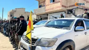 HSDê di çarçoveya bicihanîna peymana 29ê Çileyê de, ji navenda bajarokê Şêxler ê Kobanê vedikişe baregehên xwe.