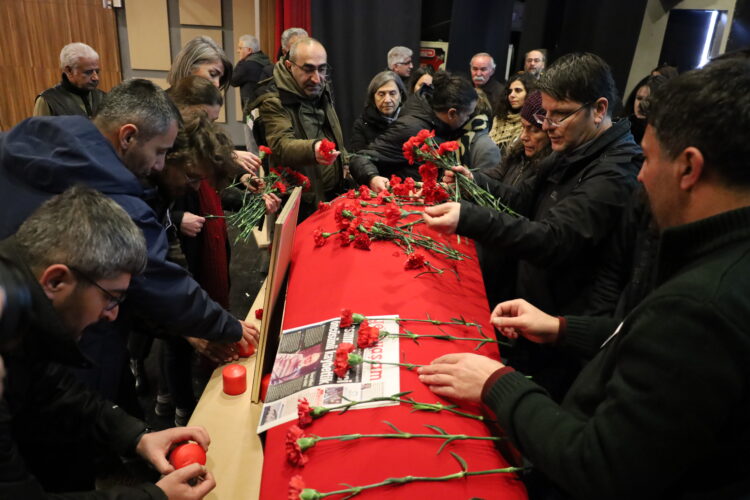Rojnameger-nivîskar Huseyîn Aykol ê ku şeva sersalê jiyana xwe ji dest da bi merasîmeka bîranînê tê oxirkirin. Rojnameger Rehyan Hacioglû li ser navê Çapemeniya Azad daxuyanî xwend û diyar kir ku mîrateya Huseyîn Aykol li ser milê bi hezaran kedkarên Çapemeniya Azad e û got: “Tu ye her tim li rex me bî. Rêya te rêya me ye.”