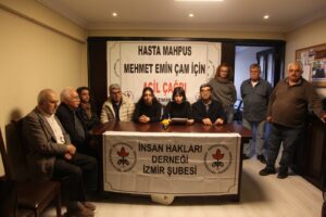 Şaxa ÎHDê ya Îzmîrê, derbarê rewşa tenduristiyê ya girtiyê nexweş Mehmet Emîn Çam (74) li avahiya komeleyê daxuyaniyek da. Li hola ku daxuyaniyê lê hat dayîn pankarta “Ji bo girtiyê nexweş Mehmet Emîn Çam banga lezgîn” hat daliqandin. Rêvebera ÎHDa Îzmîrê Nazli Turan metna çapemeniyê xwend.
