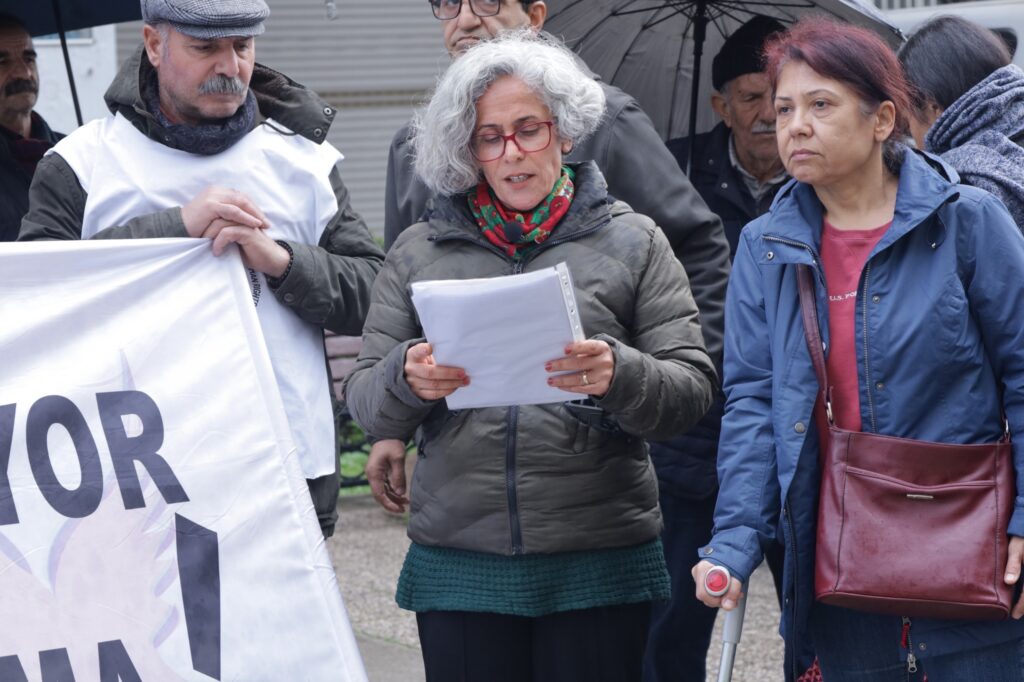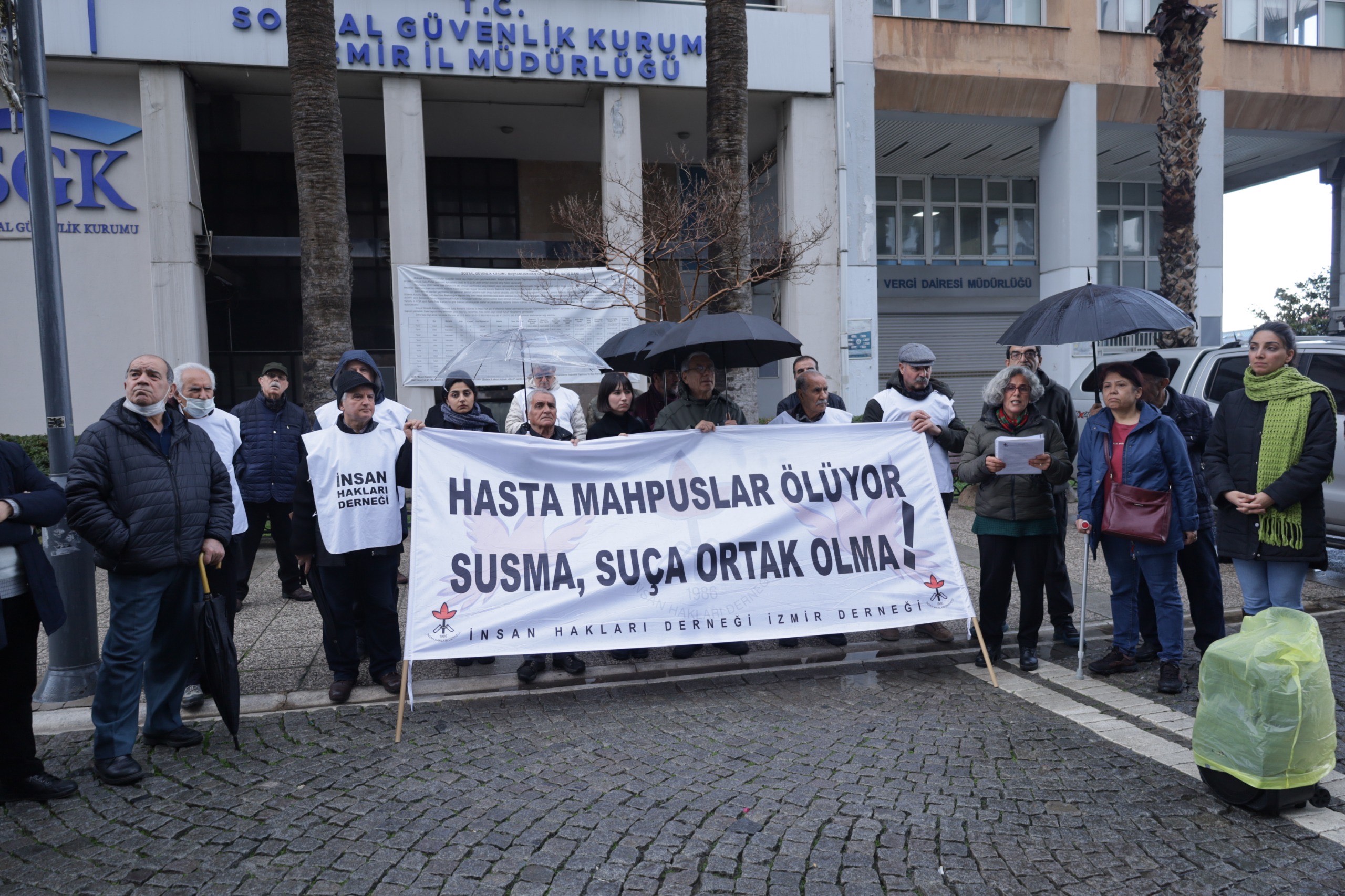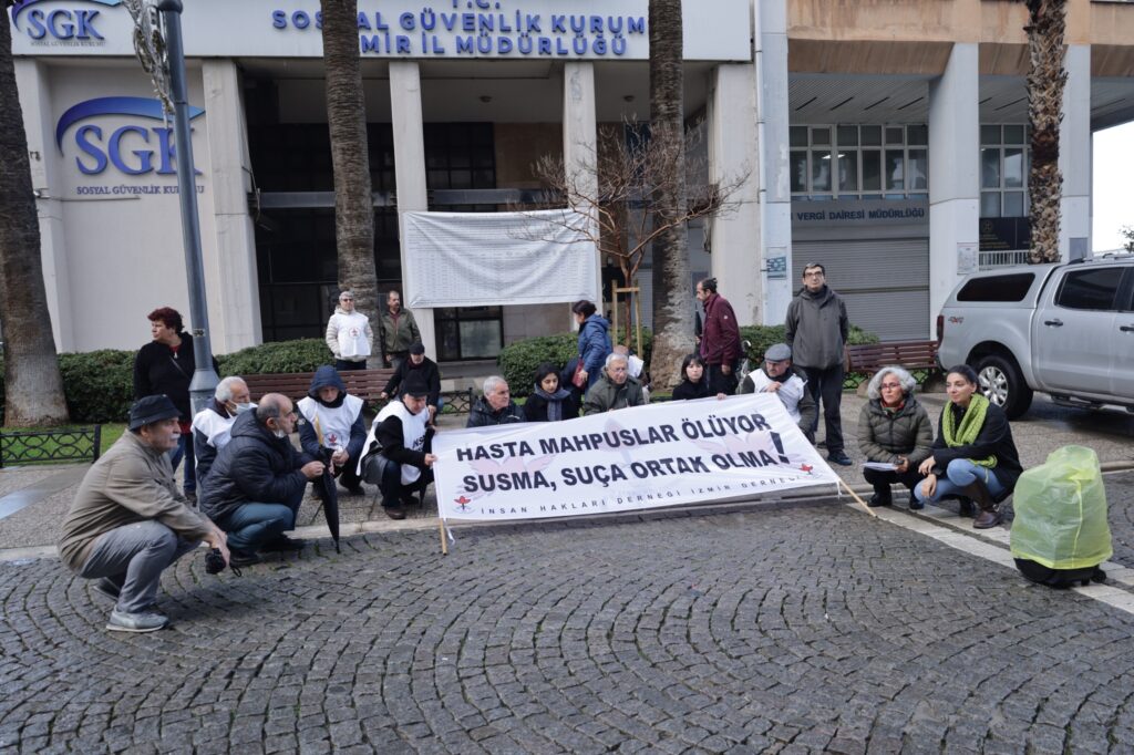 Şaxa ÎHDê ya Îzmîrê di çalakiyên xwe yên ji bo balkişandina ser rewşa girtiyên nexweş li ber Sumerbankê ya li Konakê çalakiya xwe ya rûniştinê ya du hefteyan carekê li dar xist Di daxuyaniyê de pankarta “Girtiyên nexweş dimirin, bêdeng nemîne û nebe şirîkê mirinan” hate vekirin. Daxuyanî ji hêla endamê ÎHDê Vetha Aydin ve hate xwendin.