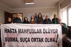 Şaxa ÎHDê ya Îzmîrê, ji bo parastvana mafên mirovan û girtiya nexweş Hatîce Onaran serbest bê berdan, li avahiya komeleya xwe civîna çapemeniyê li dar xist. Di daxuyaniyê de pankarta “Girtiyên nexweş dimirin. Bêdeng nemîne, nebe şirîkê sûcan!” hate vekirin. Daxuyaniya hevpar ji aliyê Hevseroka Şaxa ÎHDê ya Îzmîrê Zîlan Gumuş ve hate xwendin.