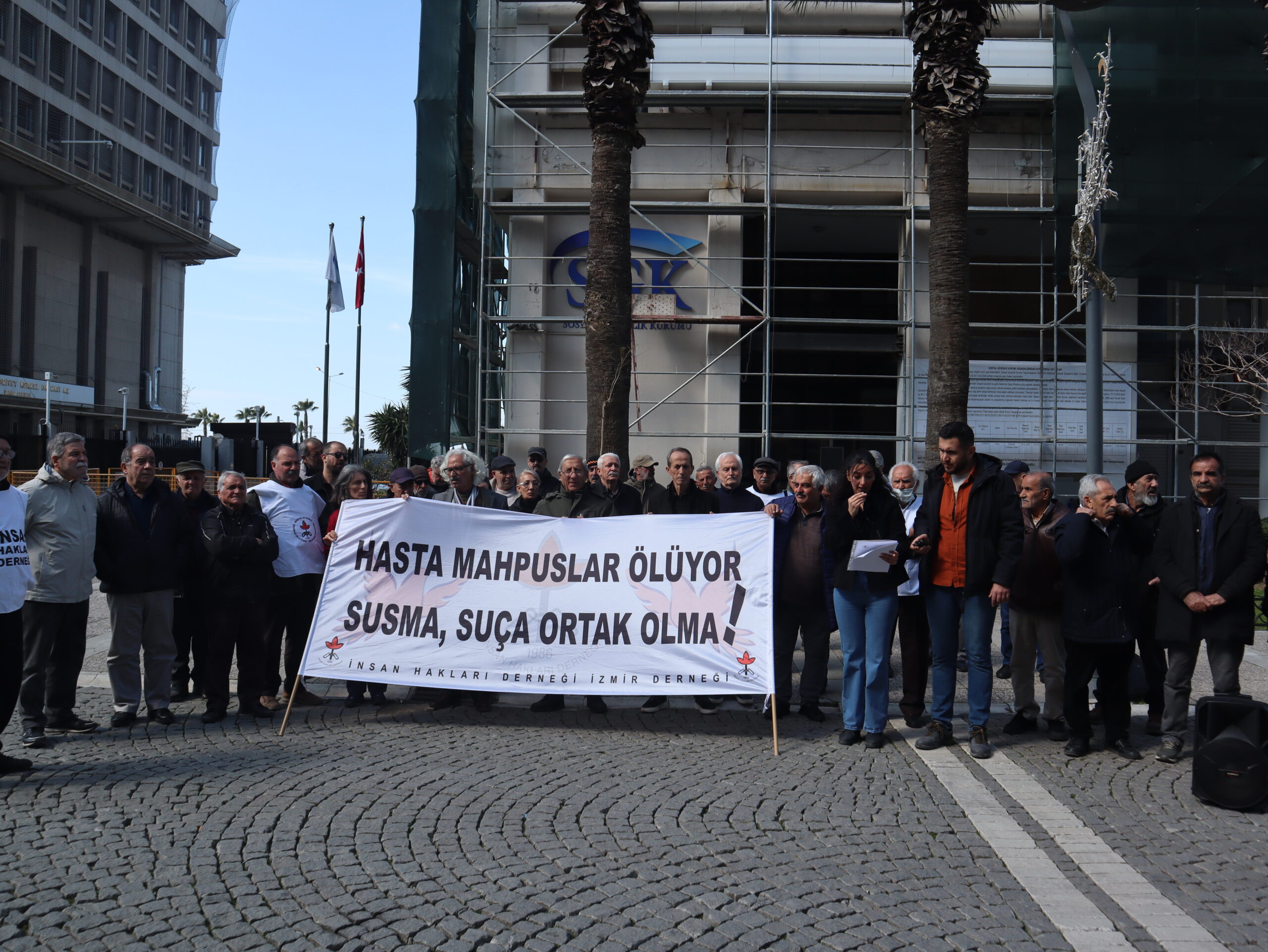 Şaxa ÎHDê ya Îzmîrê di çalakiya xwe ya du hefteyan carekê pêk tîne de bail kişand ser rewşa girtiyên nexweş Esmer Avaz û Mehmet Emîn Çam. Çalakiya daxuyaniyê li pêşiya Sumerbankê ya li Konakê ya Îzmîrê hat lidarxistin. Di daxuyaniyê de pankarta “Girtiyên nexweş dimirin, bêdeng nemîne û nebe şirîkê mirinan” hate vekirin. Daxuyaniyê endama ÎHDê Zîlan Gumuş xwend.