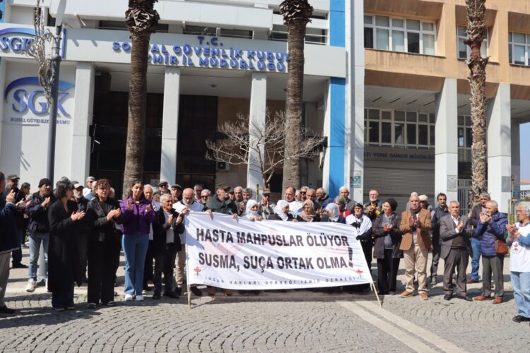 Şaxa Komeleya Mafên Mirovan (ÎHDyê ya Îzmirê, çalakiya xwe ya du hefteyan carekê li dar dixe, berdewam kir. Di çalakiyê de pankarta “Girtiyên nexweş dimirin. Bêdeng nebe, nebe şirîkê vî sûc!” hate vekirin. Metna daxuyaniyê endama Desteya Rêveber a ÎHDê Hatîce Erdogan xwend.