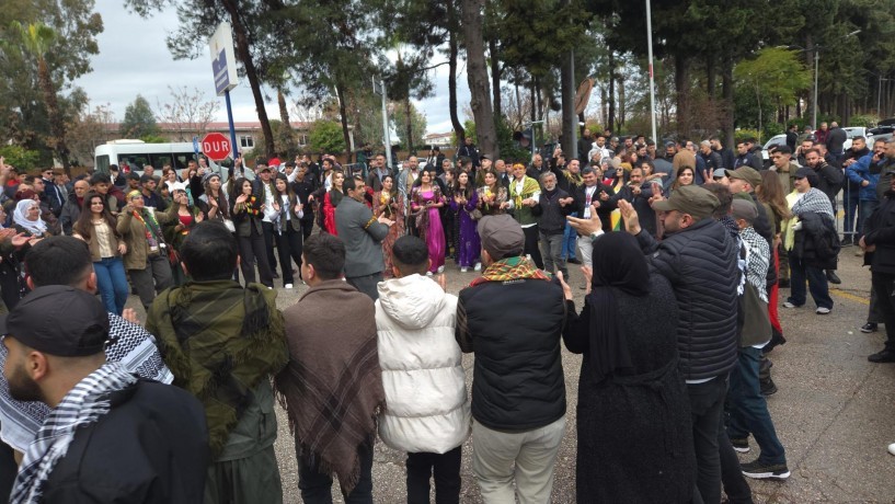 Pîrozbahiyên Newrozê li gelek bajaran ligel baran û sermayê jî bi coş dest pê kirin. Li Edeneyê pîrozbaniyê Newroza bi şîara Newroza Azadî û Yekîtiya Demokratîk li Şanoya Servekirî ya Mîmar Sînan a li navçeya Seyhanê tê pîrozkirin. Tevî barana giran jî kesên ku bi cil û bergên xwe yên neteweyî hatibûn, piştî du nuqteyên kontrolê ketin qada pîrozbahiyê. Welatî xwe bi rengên kesk, sor û zer, cil û bergên neteweyî xemilandîn, dîmenên rengîn û balkêş derxistin holê. Girse bi sloganên “Bijî Serok Apo”, Bijî Kurdistan” û “Bijî Newroz” ketin qadê û li ber dahûl û zirneyê govend gerandin.