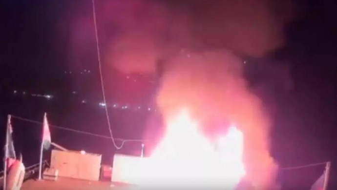 Di saetên şevê de li dijî fîloyê bi droneyan êrişa bombeyên deng û kîmyewiyên nehatine pênasekirin hate kirin û hat zanîn ku xisar gihiştiye du keştiyan.