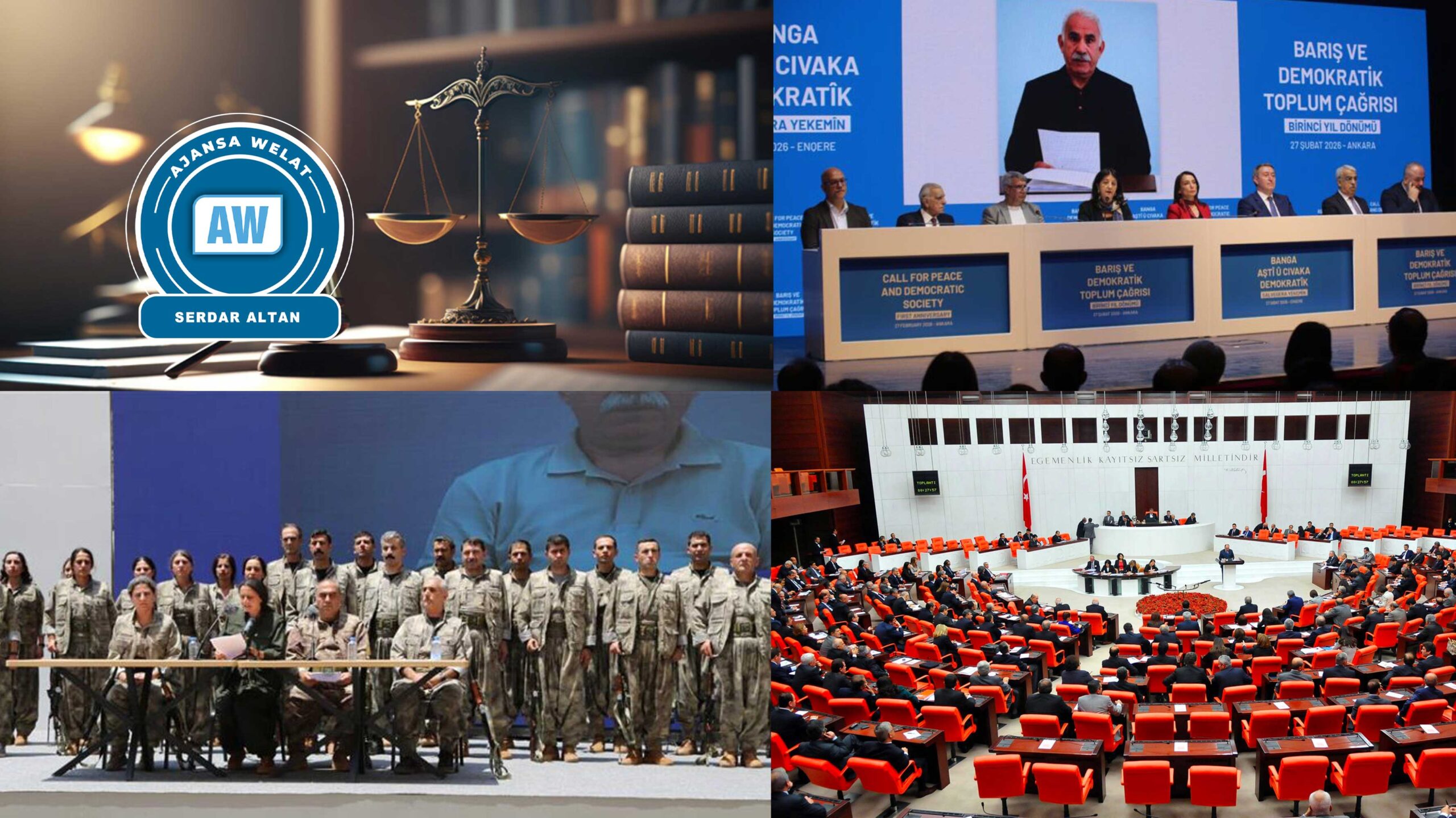 Gelek pirsgirêk û krîzên ku em îro pê re rû bi rû dimînin ji nebûna pergaleke hiqûqî ya demokratîk derdikevin. Em di çarçoveya siyaseta demokratîk de çareseriyeke hiqûqî didin pêş. Em hewceyê nêzîkatiyekê ne ku ji bo civakeke demokratîk, ji bo demokrasiyê bi xwe cîh bide û ji bo wê garantiyên hiqûqî yên bihêz biafirîne. Têkiliya hemwelatîbûnê divê li ser girêdana bi dewletê re be, ne li ser aîdiyeta neteweyekê. Em hemwelatîbûna azad a li ser bingeha azadiya ol, netewe û ramanê didin pêş. Çawa ku ol û ziman nayên ferzkirin, divê netewe jî neyê ferzkirin. Pêwendiyeke hemwelatîbûna destûrî di nav sînorên demokratîk de û li ser bingeha yekparçeyiya dewletê mafê îfadekirin û rêxistinkirina azad a nasnameya olî, îdeolojîk, nasname û nasnameya neteweyî dihewîne. Îro, tu pergaleke ramanê bêyî ku li ser demokrasiyê were damezrandin nikare bijî. Bilindbûn û daketin, alozî û krîz demkî ne; demokrasî ew e ku zû yan dereng dê mayînde be. Banga me armanc dike ku ne tenê ji bo pirsgirêka jiyana hevbeş li Tirkiyeyê, lê di heman demê de ji bo krîza ku ew li Rojhilata Navîn çêdike jî çareseriyan bibîne. Em mafê hemû kesên ku neheqî lê hatiye kirin diparêzin ku hebin û xwe bi azadî îfade bikin.”