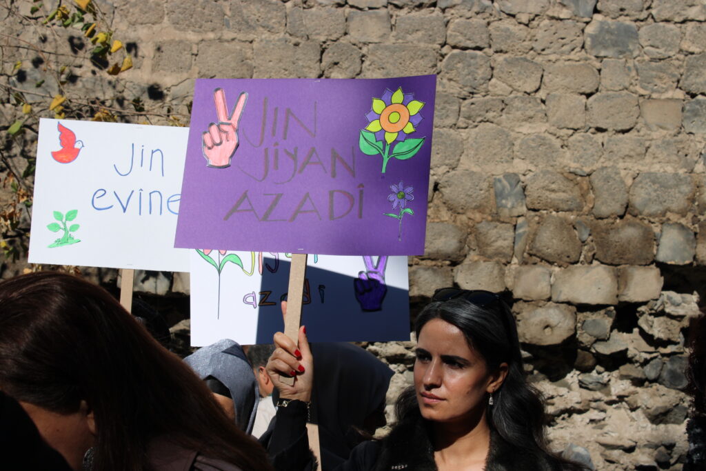 Bi pêşengiya Platforma Jinan a Dîcle Firatê (DAKAP)ê ji bo piştevaniya bi jinên girtî re li ber Postexaneya Sûrê daxûyanî da û ji jinên girtî re qert şand. Di daxuyaniyê de pankarta “bi civaka demokratik ber bi jiyana azad a bê tundî ve” hat vekirin û piştî daxuyaniyê jin bi dirûşmeyên “Jin Jiyan Azadî”, “Bijî Berxwedana Zindan” ji bircan heta Postexaneyê meşiyan. Rêveberên partiyên siyasî, nûnerên saziyên sivîl û komeleyên jinan tev li bernameyê bûn.