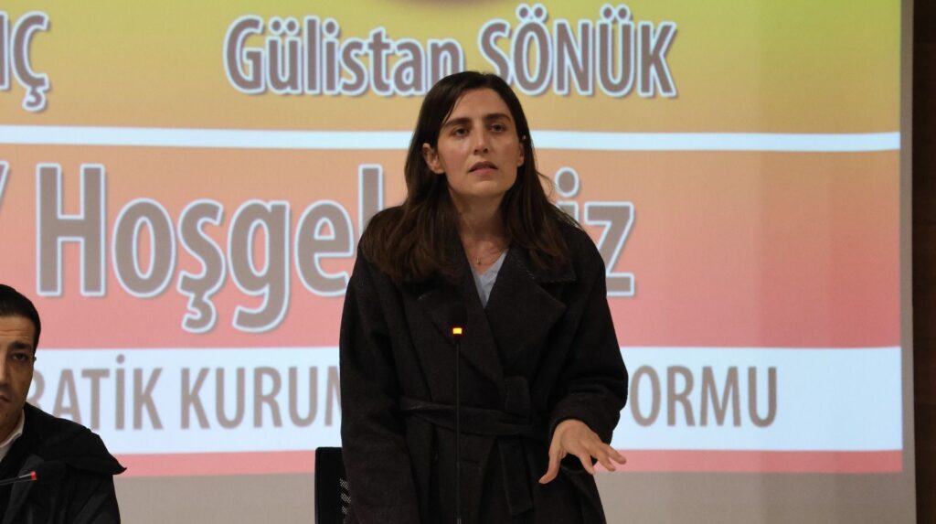 Gulistan Sonuk di dawiya axaftina xwe de da zanîn ku ji bo serkeftina pêvajoyê hewceyî bi aştiyek navxweyî heye û axaftina xwe wiha bi dawî kir: “Ji bo îro em qala aştiyek nava neteweyan bike divê destpêkê em aştiya di nava civaka xwe de ava bikin. Heya em aştiya navxweyî saz nekin em ê nekarin bi awayek serkeftî bi neteweyek din re jî aştiyê pêk bînin. Divê têkiliyên me yên di navbera civaka me de demokratîk bin. Em ê hemû pirsgirêkên xwe bi dan û stendinê an go bi diyalogê çareser bikin.”