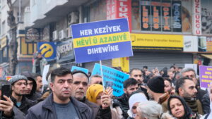 Meşê ji ber Bîrdariya Mafên Jiyanê ya li Parka Koşuyolû dest pê kir. Di meşê de girseyê bênavber dirûşmeyên “Bijî Serok Apo”, ”Yek e yek e gelê Kurd yek e”, “Şehîd namirin”, “Bijî berxwedana Rojava” û “Rojava Rojhilat e Kurdistan yek welat e” hatin berzkirin. Pankartên “Xwedîderketina li Rojava, xwedîderketina li mirovahiyê ye”, “Em bi ruhê yekîtiya neteweyî ya demokratîk 1ê Sibatê Roja Piştgiriya Rojava ya Cîhanî silav dikin” hatin vekirin. Di meşê de dowîzên, “Berxwedan bi honandina keziyên jinan dest pê dike”, “Her keziyek hêvî û azadiyê dihewîne” û gelek dowîzên din hatin rakirin.