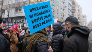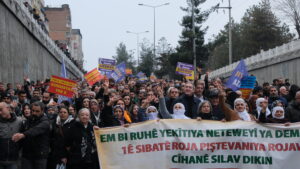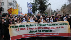 Li Amedê bi pêşengiya Platforma Saziyên Demokratîk bi boenya 1ê Sibatê Roja Piştevaniya bi Rojava re ya Cîhanê bi deh hezaran kes meşiyan. Piştî meşê Hevserokê DEM Partiyê Tuncer Bakirhan axivî û got: “Êriş kirin lê berxwedana Kurdan ji bîr kirin. Hûn nikarin bi milyonan Kurd bêstatu bihêlin. Divê hikûmet li gorî peymanê tevbigere.”