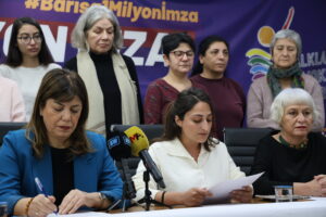 Hevberdevka HDKê Meral Daniş Beştaş jî axivî û diyar kir ku ev deklarasyon bernameya têkoşîna wan a pêşwazîkirina 8ê Adarê ye û wiha axivî: “Em îro di nava qeyranê de ne. Lê qeyran gelemperî li ser milê jin, ciwan û kedkaran e. Tenê duh li Tirkiyeyê 6 jin hat kuştin. Ev hejmar ne tenê îstatîsk in. Kuştina jinan encama hêrsek takekesî nîn e, polîtîkayek taybet e. Em vê tiştê qebûl nakin. Em dizanin ku polîtîkayên bêcezahiştinê bi daxwaza dewletê pêk tê. Bi polîtîkayên ‘sala malbatê’ jin tune hatin hesibandin. Duh me daxuyanî dît ku li ser navê jinan daxuyanî tê dayîn. Jixwe Serokkomar Erdogan jin çend zarok bînin dinê li ser vê diaxive. Siyasetmedar jî van axaftinan hêz digirin û li ser jiyana jinan diaxivin.”
