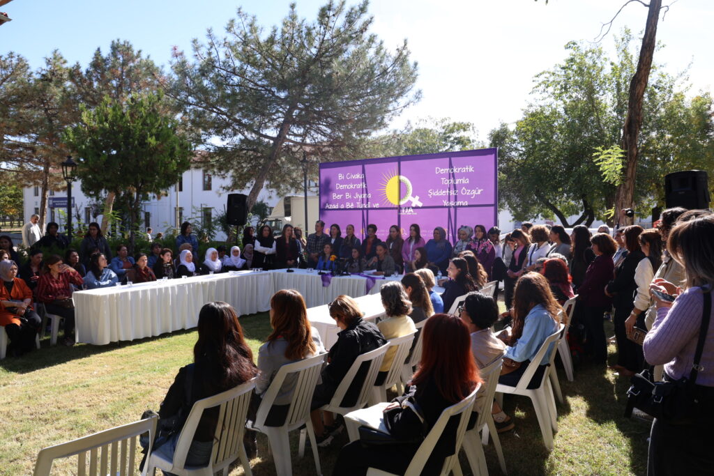 TJAyê bi dirûşma “Bi civaka demokratîk ber bi jiyana azad a bêşidet ve”deklarasyona 25ê Mijdarê eşkere kir. Di deklarasyonê de hat destnîşankirin ku şer jiyanê tine dike û şer mêraniyê rewa dike û aştiyê ne tenê wekî bêdengbûna çekan, lê belê wekî dawîhatina hemû şêweyên şidetê dibînin û wiha hat gotin: “Aştî tê wateya jiyaneke wisa ku tê de jin nayên kuştin, nasnameyên wan nayên înkarkirin, bedenên wan nabin qada şer.”