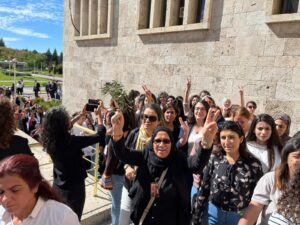 Jinên TJAyî dema ketin li Meclisê dirûşmên “Bijî Serok Apo”, “Mafê Hêviyê Mafê Gelan e”, “Jin Jiyan Azadî” berz kirin.