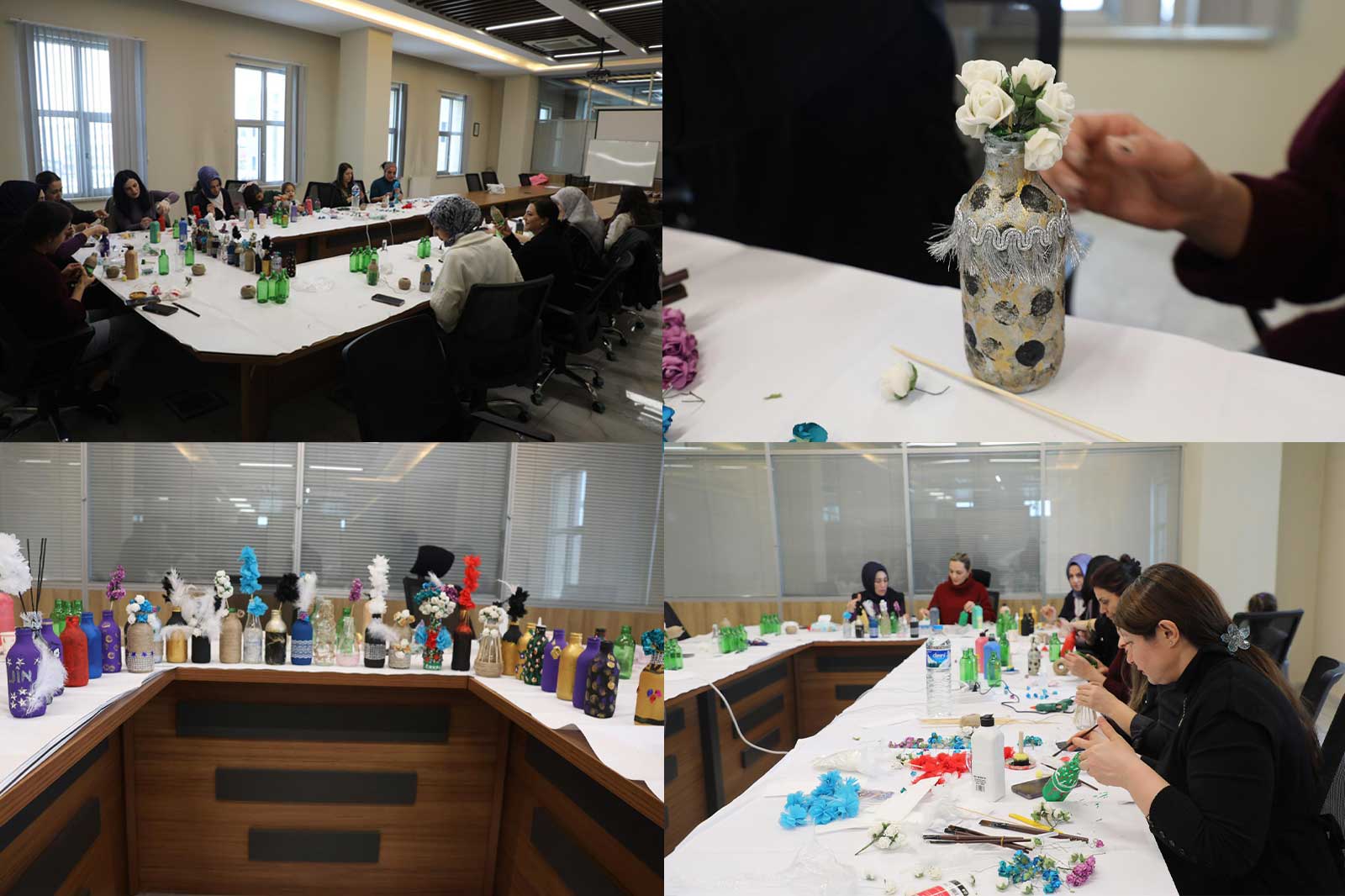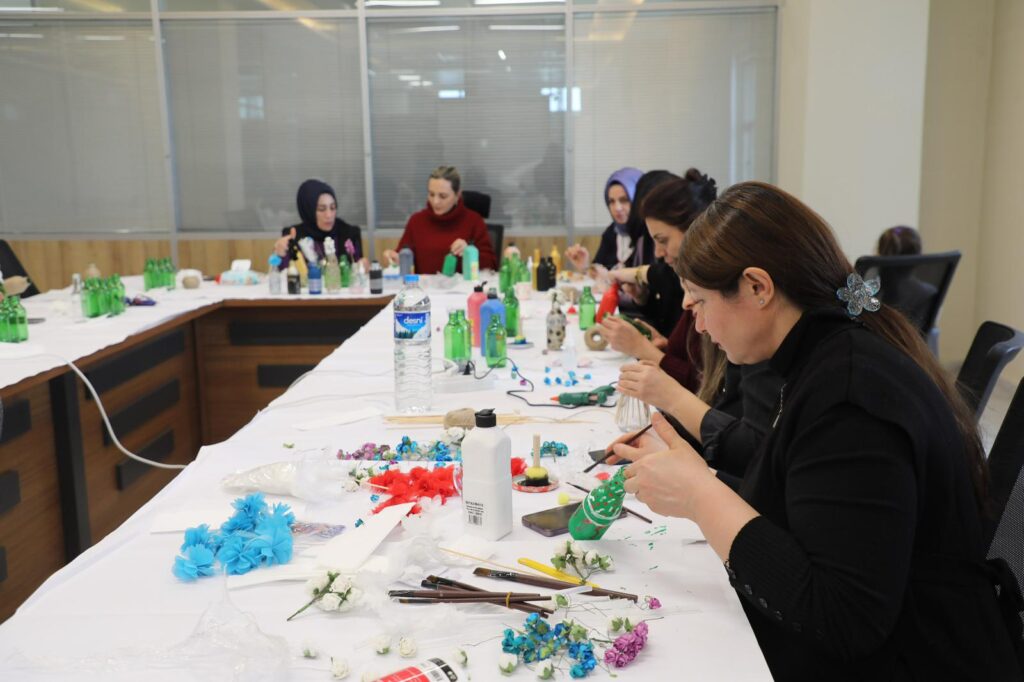 Gerînendehiya Polîtîkayên Jinan a Şaredariya Tuşbayê ya Wanê, bi nirxandina tiştên ku tên hatine avêtin ji bo hişmendiya jîngehê pêş bixe kargeheke li dar xist. Di van kargehan de tiştên hatine avêtin bi hinek kedê vediguherin alavên estetîk û jiyanî. Şûşeyên sodayê yên ku di xwezayê de bi salên dirêj dimînin, bi destê jinan dibin vazoyên estetîk. Çiqilên daran jî bi xemilandina jinan dibin motîfên kulîlkan. Ev xebat ne tenê hilberîn an jî guherîneke dîtbarî pêk tîne, di heman demê de hişmendiya parastina xwezayê ya kolektif jî ava dike.