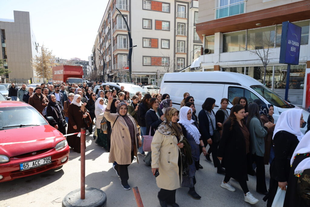 Jin li Wanê ji bo tevlibûna Meşa Gemlikê ku Tevgera Jinên Azad (TJA) ji bo azadiya fîzîkî ya Rêberê Gelê Kurd Abdullah Ocalan li dar dixe, bi rê ketin. Jin, ewilî li avahiya DEM Partiyê kom bûn û heta Parka Musa Anter meşiyan. Di meşê de dirûşmên “Jin jiyan azadî azad dike rêbertî”, “Bê Serok jiyan nabe” û “Mafê hêviyê mafê gelan e” hatin berzkirin.
