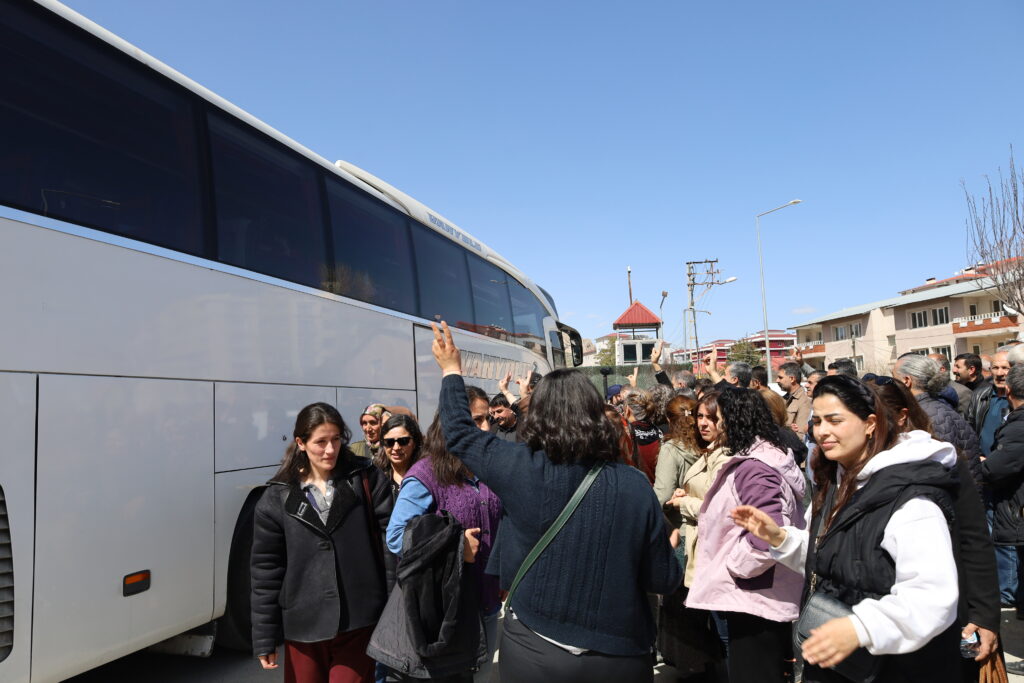 Jinên ku gihiştin Parka Musa Anter li vir li otobusan siwar bûn û ji bo tev li meşê bibin berê xwe dan Gemlikê.