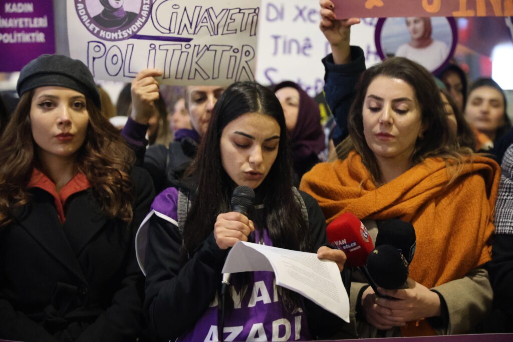 Piştî meşê jinan li ser Rêya Cûmhûriyetê daxuyaniyek da û metna daxuyaniyê ji hêla rêvebera KURDÎGEHê Evîndar Akbûlût ve hat xwendin. Evîndar Akbûlût anî ziman ku ew kampanyaya xwe ya “em ji bo bijîn û bidin jiyandin birêxistin dibin” bi dawî dikin. Evîndar Akbûlût destnîşan kir ku ew xwişkên Mirabal, yên ku ji aliyê dîktatoriya Trujîllo ve hatin kuştin û bûne semboleke gerdûnî ya têkoşîna ji bo azadiya jinan, bi bîr tînin û got: “Îro em dengê Rojin Kabaiş, Nagihan Akarsel, Cihan Bilgin, Îpek Er, Şûle Çet, Hevrîn Xelef û hemû jinên ku  bedenê xwe bi axê re kirine yek û bûne bêdawî nin. Dengê me dengê wan e û têkoşîna me berdewamiya jiyana wan e.”