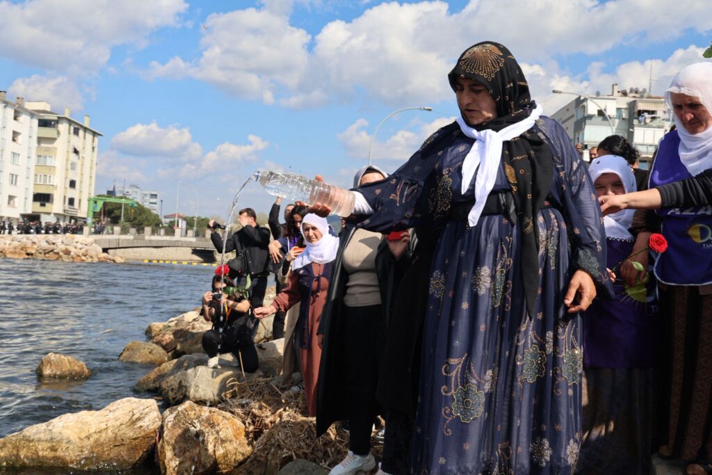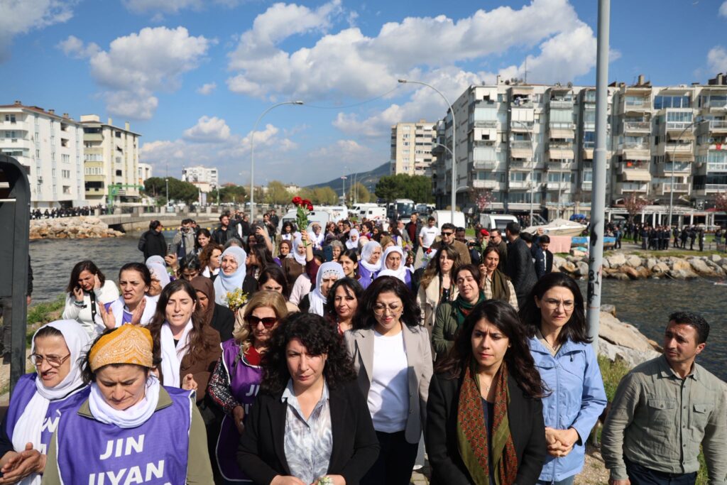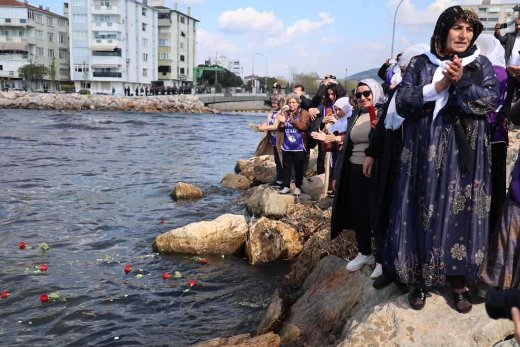 Aktîvîstên TJAyê ku li Gemlîkê meş li dar xistin gul û name avêtin Behra Marmarayê û silavên xwe ji Rêberê Gelê Kurd Abdullah Ocalan re şandin. Jinan li vir dirûşma “Mîmarê aştiyê li Îmraliyê ye” berz kirin.