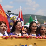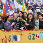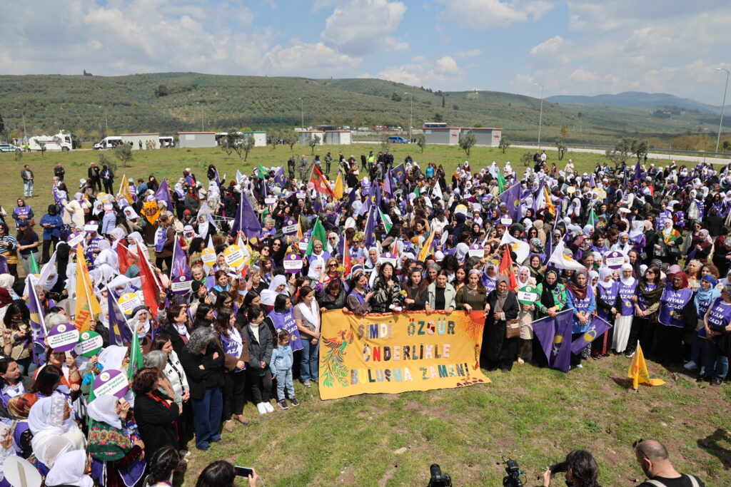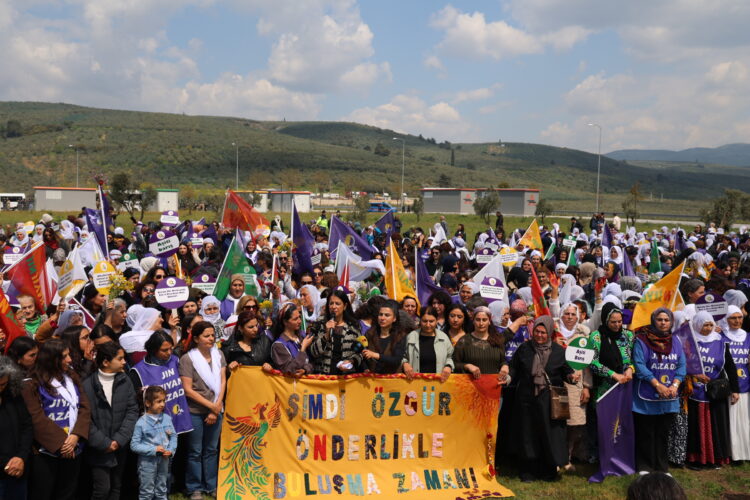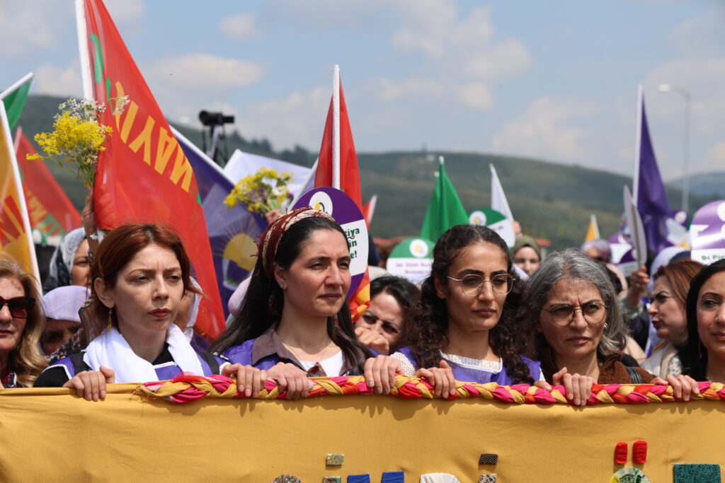 “Îro li vir; wekî jinên ku ji lêgerîna heqîqet û berxwedana Amedê, ji xeta serhildan û azadiyê ya Botanê, ji rihê têkoşîna bêsînor a Serhedê, ji çanda jiyana hevpar a gelan a Egeyê, ji tevna civakî ya pirnasnameyî û pirzimanî ya Marmarayê, ji keda berxwedêr a Anatolya Navîn, ji hafizeya hilberîn û piştevaniya Çukurovayê û ji Behra Reş hatine qeraxên aştiyê, em di vê meşê de digihîjin hev.