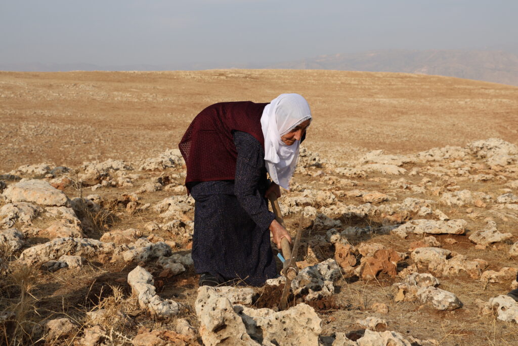 Jinên ku li ber avahiya DEM Partiyê kom bûn, heya Çiyayê Spî meşiyan û li vir destpêkê berû dan hev. Piştî berhevkirina berûyan jinan bi tevr û bêran erd kola û berû çandin.