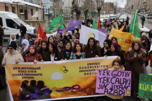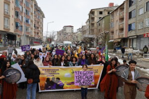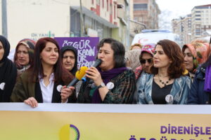Parlamentera DEM Partiyê ya Mûşê Sumeyye Bozê di bernameyê de axivî û got: “Çawa ku pêşengên aştiyeke birûmet di Pêvajoya Civaka Demokratîk de jin in, di têkoşîn û temînata aştiyê de jî pêşeng jin in. Heke îro muzakereyên aştiyê tên axaftin, dirûşma me jî dê bibe ‘Îro dema jinê ye’. Heke îro jin li kolanan bi dirûşma ‘Jin, jiyan, azadî’ dimeşin û destkeftiyan bi dest dixin, ev bi saya têkoşîna azadiyê ya jinên Kurd e.”