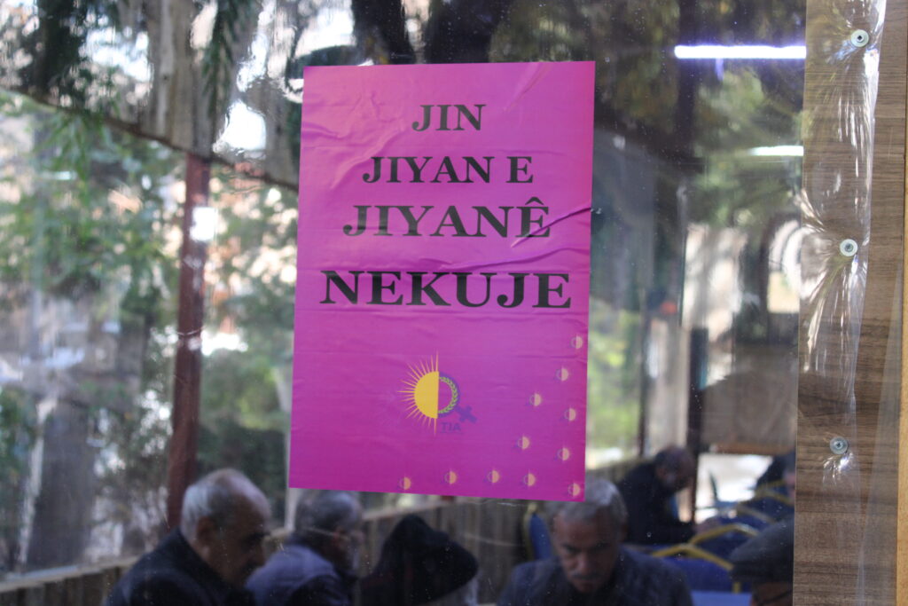 Tevgera Jinên Azad bi boneya 25ê Mijdarê li navçeya Sûrê belavok belav kirin û banga beşdariya meşa 25ê Mijdarê kirin.