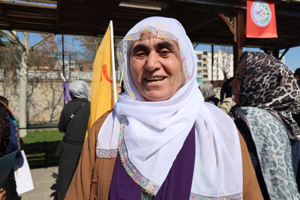 Hamdiye Surer qala şertên jiyana jinan, giraniya barên civakî û keda bêdawî ya jinan kir û wiha axivî: “Em aştiyê dixwazin. Em edaletê dixwazin. Em wekheviyê dixwazin. Em dixwazin mafên me hebe. Û çi tişt hebin, tê serê jinan. Jin derdê mêr, êşa zarokan dikişînin, barê malê, qehr û barê xesû û xezûran dikişînin. Her tişt li ser milê jinan e. Çi tiştên nebaş hebin, jin dikişînin. Ji ber vê yekê em îro hatine û li vir kom bûne; ji bo azadiya jinê, ji bo serbixwebûna jinê. Jin, jiyan, azadî.”