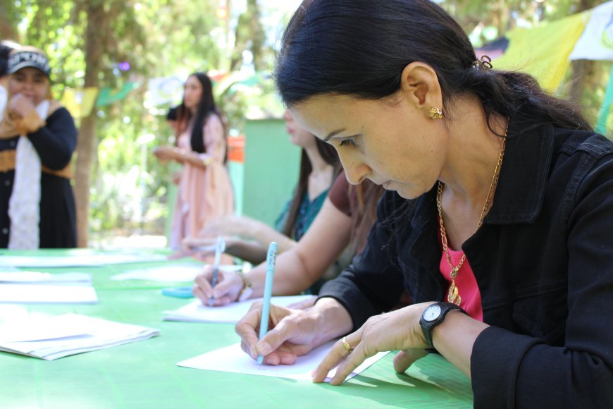 Di çarçoveya kampanyaya “Ez dixwazim hevdîtin bi Abdullah Ocalan re bikim” de jinên ji Girkê Legê û Rimêlanê nama nivîsandin.