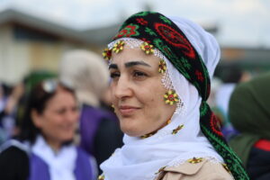Jinên ku tev li meşê bûne diyar kirin ku ev meş ji bo azadiya Rêberê Gelê Kurd Abdullah Ocalan e, dan zanîn ku Abdullah Ocalan hêviya wan e û destnîşan kirin ku ev jî ji bo hêviyê meşê li dar dixin.